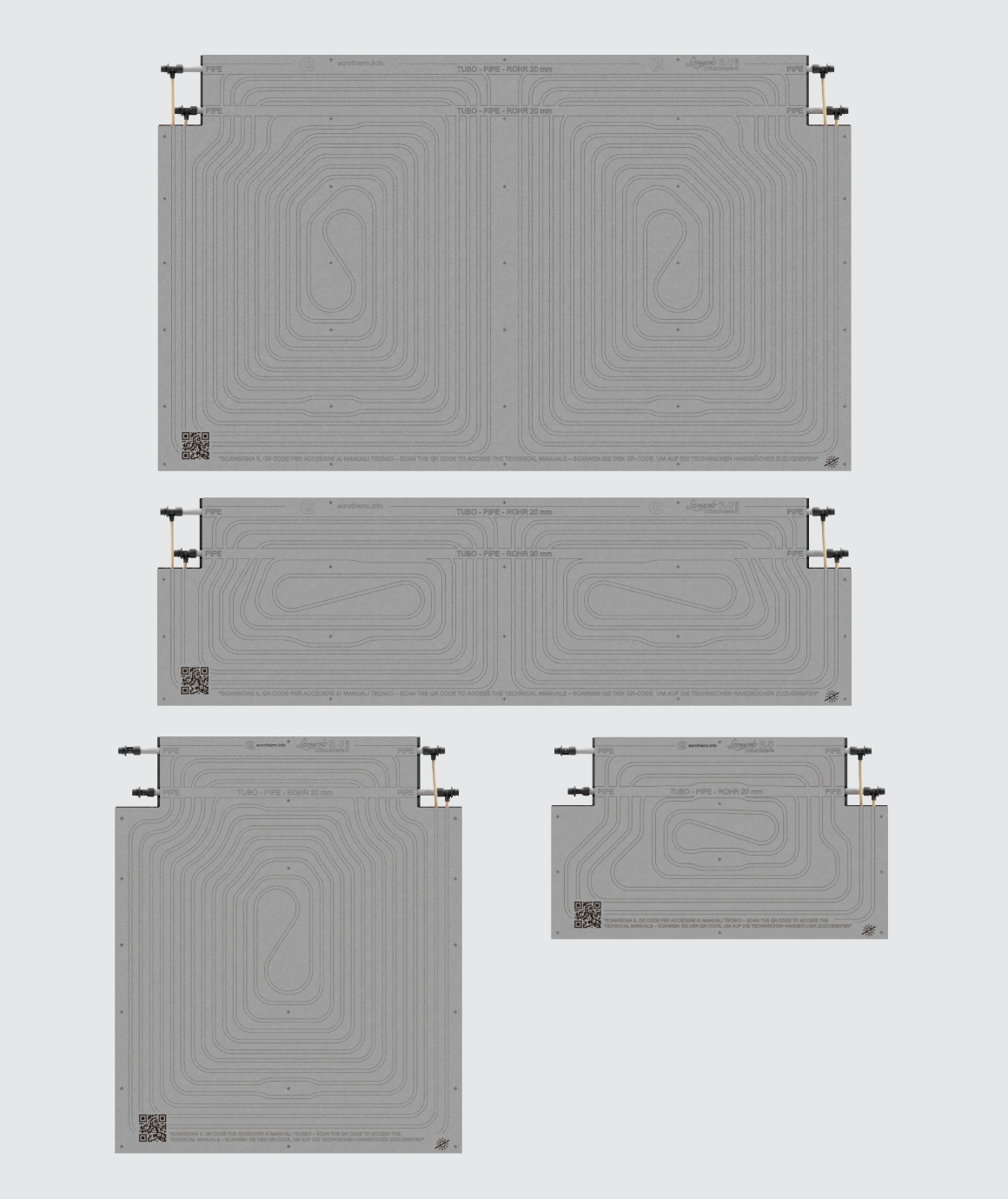 The Leonardo 5.5 and Hydro radiant ceiling is ideal for both winter heating and summer cooling; its high performance earned it the Klimahouse Trend 2013 award. The system consists of a 15 mm plasterboard panel coupled with 35 mm graphite-sintered expanded polystyrene for a total thickness of 50 mm. The gypsum board panel is complete with 5-layer polyethylene piping with EVOH oxygen barrier. The MidiX Plus high-temperature-resistant polyethylene piping - with 5.5cm spacing - is arranged in a serpentine pattern so as to maximize the exchange surface between the piping and plasterboard. System available in Hydro version with moisture-resistant plasterboard.