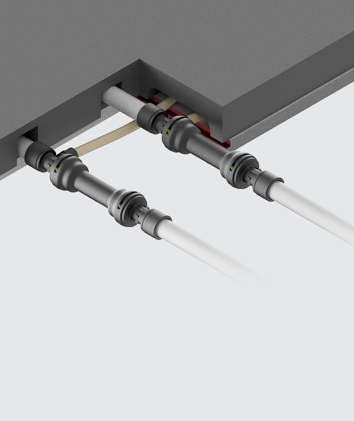 The Leonardo ceiling system provides high efficiency and very low thermal inertia thanks to the MidiX 10x1.3 mm pipe, the piping integrated into the plasterboard – which increases efficiency by 8 percent compared to the pipe in the insulation – and the special serpentine geometry.